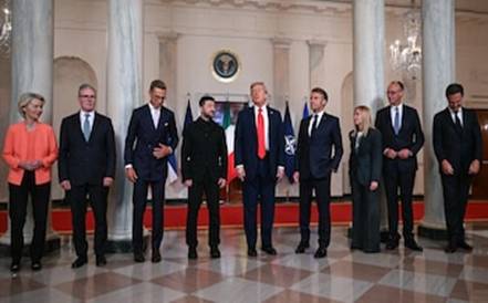Donald Trump pictured with Volodymyr Zelensky, the Ukrainian president, European leaders and Mark Rutte, the Nato secretary-general, in August last year Credit: Andrew Caballero-Reynolds/AFP via Getty Images