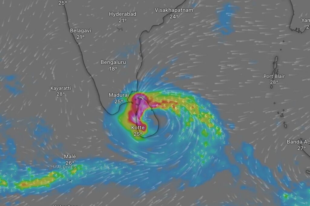 ශ්රී ලංකාවට ගිනිකොන දෙසින් බෙංගාල බොක්කෙහි ඇති වූ දිට්වා සුළි කුණාටුව ඉදිරි පැය 48ක කාලය තුළ ඉන්දියාවට තමිල්නාඩු ප්රාන්තයට ඇතුළුවීමට නියමිත බව ඉන්දීය මාධ්ය අවධාරණය කරයි.