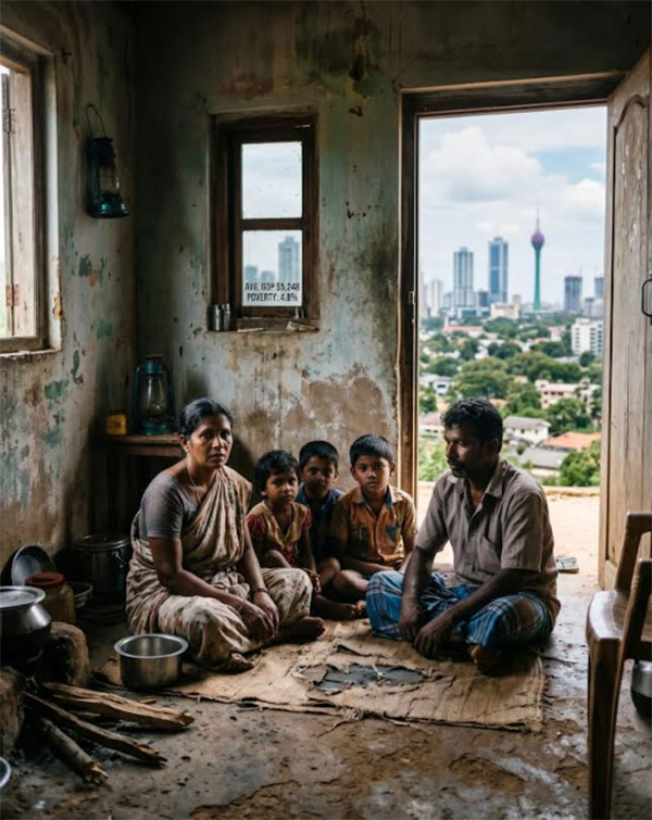 ජාතික දරිද්රතා රේඛාව මේ සඳහා මනා මිනුම්දණ්ඩක් සපයයි. 2026 පෙබරවාරි මාසය වන විට, මූලික අවශ්යතා සපුරා ගැනීම සඳහා පුද්ගලයෙකුට මසකට අවශ්ය අවම වියදම රුපියල් 16,571 ක් ලෙස දැක්වේ. මෙම අගය, ඒක පුද්ගල දළ දේශීය නිෂ්පාදිතයෙන් ලැබෙන “සාමාන්ය” ආදායම සමඟ සැසඳූ විට විශාල පරස්පරයක් දැකගත හැකිය. ආර්ථිකය සැබවින්ම සෑම පුද්ගලයෙකුටම ඩොලර් 5,000 ක වටිනාකමක් ලබා දෙන්නේ නම්, මෙතරම් විශාල දරිද්රතාවයක් තිබීම පැහැදිලි කළ නොහැක. සැබෑ තත්ත්වය නම්, බහුතරයකගේ ජීවන තත්ත්වය නියෝජනය නොකරන ආර්ථිකයේ ඇතැම් කොටස් මගින් මෙම සාමාන්ය අගය ඉහළ දමා තිබීමයි.